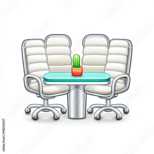 © Lalada, Naklejka premium Modern Minimalist Meeting Room with Off White Chairs and Glass Top Table