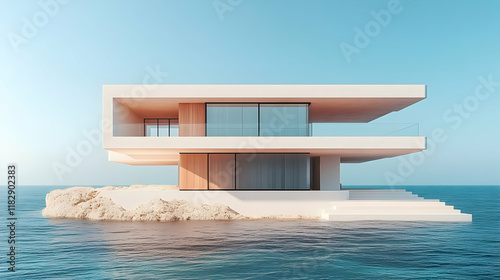 © Arief, Fototapeta premium Modern Minimalist Ocean House 3D Illustration