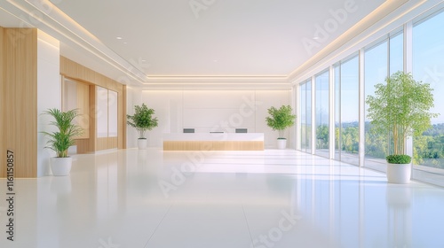 Fototapeta premium Modern Minimalist Office Lobby with Reception Desk and Natural Light.