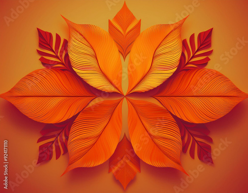 Fototapeta premium Modern Minimalist Pattern Geometric Shapes and Abstract Leaf Forms for Autumn Designs