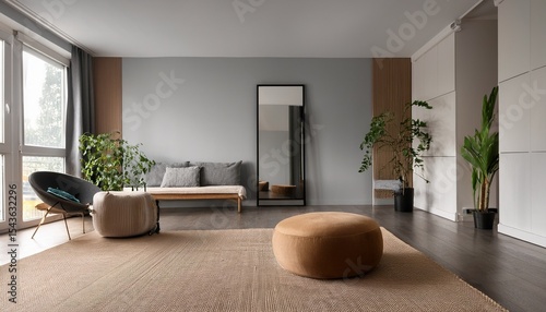 Fototapeta premium modern minimalist room with mirror and pouf