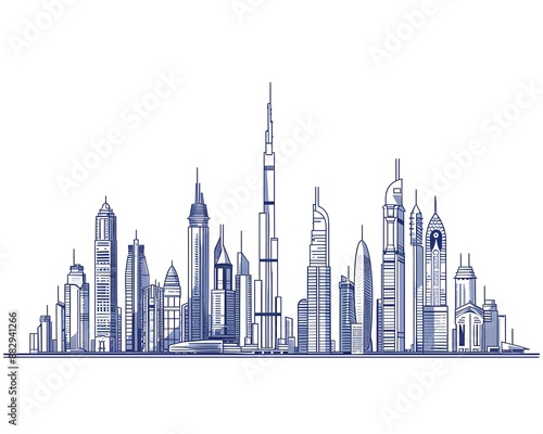 Fototapeta premium Modern Minimalist Skyline Line Art on White Background