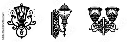 Fototapeta premium Modern Minimalist Wall Lamp Icon, Flat Silhouette of a Mounted Light Vector for Interior Illustration Design