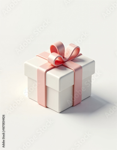Obraz premium Modern Minimalist White Gift Box with Blush Pink Ribbon: Elegant, Festive...