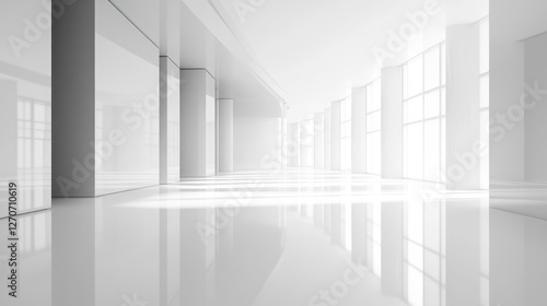 Fototapeta premium Modern minimalist white interior design with bright sunlight