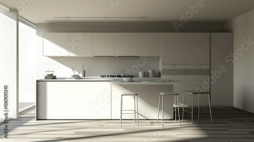 Fototapeta premium Modern Minimalist White Kitchen with Morning Light