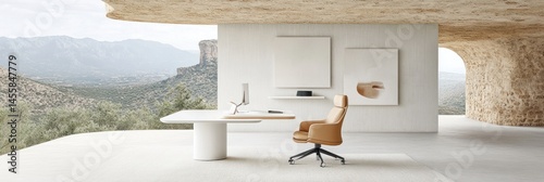 © A B I G A I L, Obraz premium Modern minimalist workspace with panoramic views