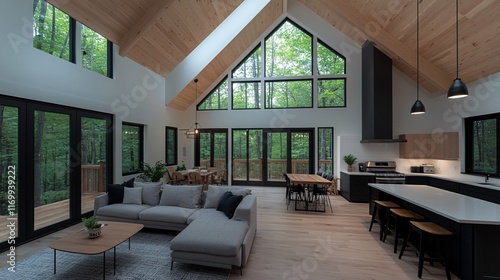Naklejka premium Modern Minimalistic Interior with Large Windows