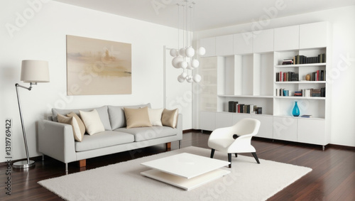 Fototapeta premium Modern minimalistic living room with soft tones and clean design