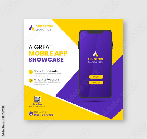 © Shorif, Fototapeta premium Modern mobile app promotion social media banner design, Instagram post, poster template
