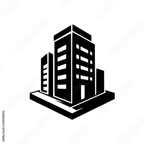 Obraz premium Modern Monochrome Cityscape: Geometric Buildings Logo Design