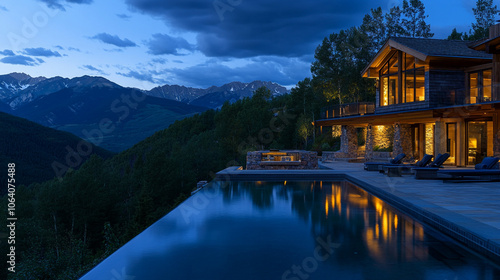 Fototapeta premium Modern Mountain Home with Infinity Pool and Stunning View