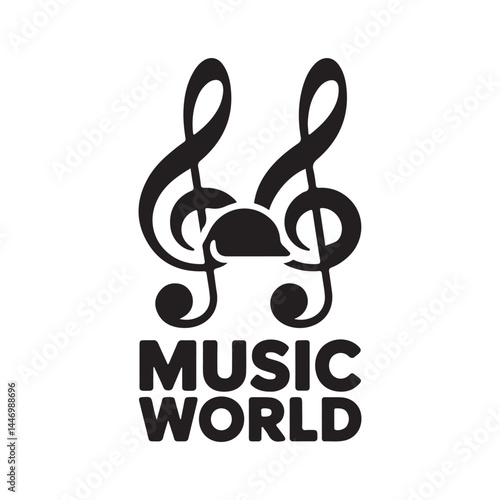 © MdMezbahul, Naklejka premium Modern Music World Vector Logo Design