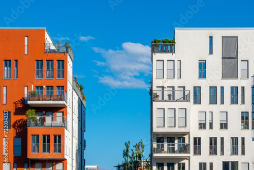 © kittyfly, Naklejka premium Modern New apartment building fragments urban residential area windows balconies architecture apartments urban housing blue sky real estate investment exterior, property development