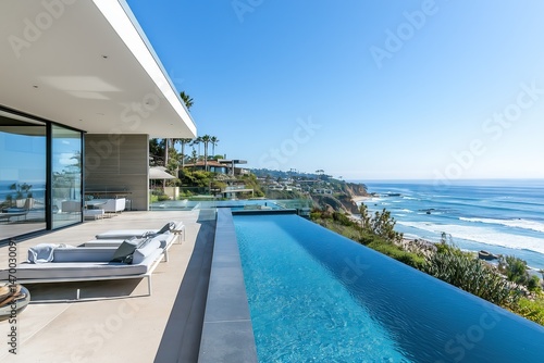 Obraz premium Modern Oceanfront Home with Infinity Pool - Space for Text