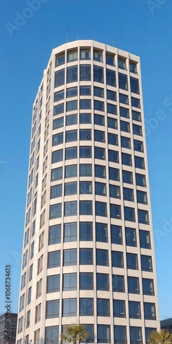 © Kaittisak, Obraz premium Modern office building against clear blue sky, representing professionalism and success, office building