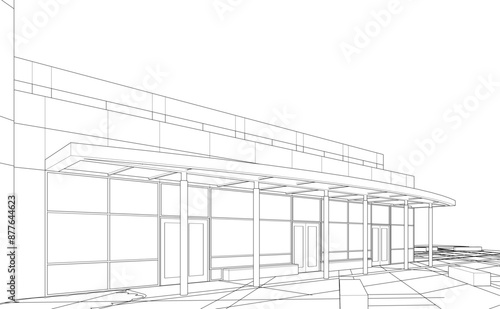 © Yurii Andreichyn, Obraz premium Modern office building concept 3d rendering