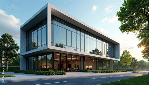 Fototapeta premium Modern office building exterior, showcasing sleek design and urban landscape...