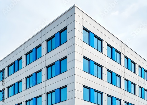 © Yauhen, Obraz premium Modern Office Building Facade With Geometric Pattern And Blue Windows