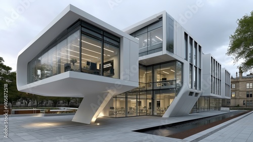 Fototapeta premium Modern office building showcases sleek design in urban environment with...