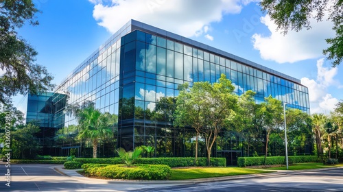 Obraz premium Modern office building with landscaping in sunny day, excellent for...