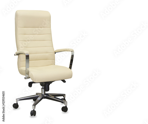 Fototapeta premium Modern office chair from beige leather. Isolated