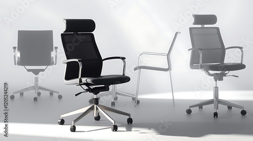 Fototapeta premium Modern office chairs in a minimalist setting.