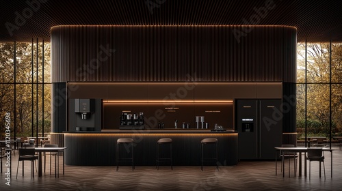 Fototapeta premium Modern Office Coffee Bar: Autumnal View