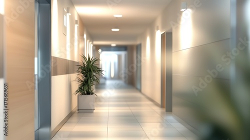 Obraz premium Modern Office Corridor: Tranquil and Bright Interior Design