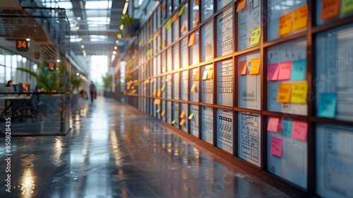 Fototapeta premium Modern Office Corridor with Colorful Sticky Notes