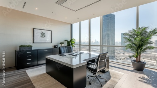 © lestari, Fototapeta premium Modern office executive desk with city view (3)