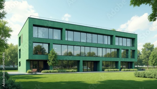 © Ada, Fototapeta premium Modern office green building.
