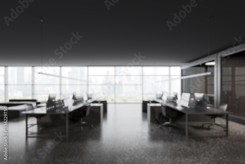 © ImageFlow, Fototapeta premium Modern office interior with desks and chairs. 3D Rendering