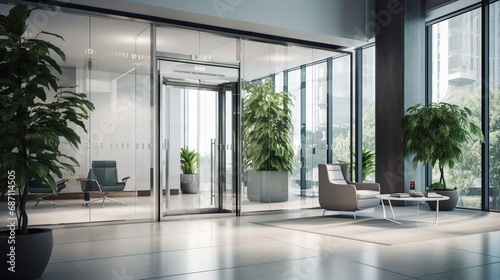 Obraz premium Modern Office Interior with Floor-to-Ceiling Windows