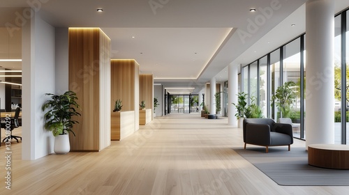 Fototapeta premium Modern Office Interior with Open Floor Plan and Natural Light Featuring...