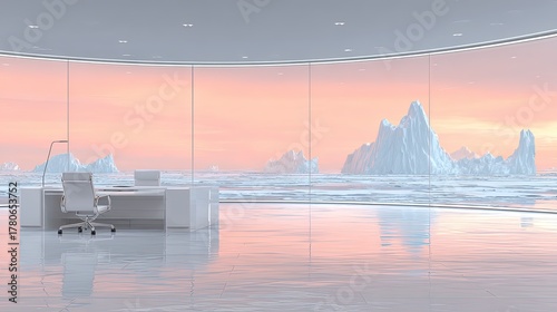 Obraz premium Modern Office Interior With Panoramic Sunset View