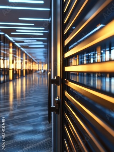 Obraz premium Modern Office Interior with Streamlined Design and Warm Lighting