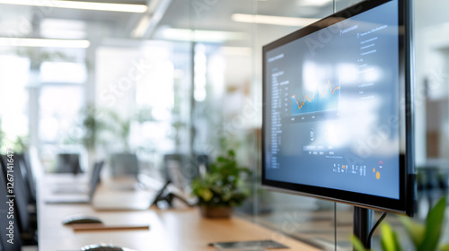 Naklejka premium Modern office interiors feature sleek furniture, ample natural light, and...