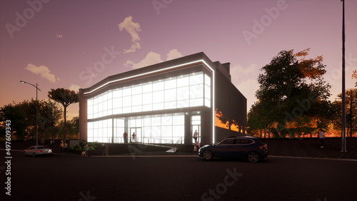 Obraz premium Modern office project, shop building. 3d graphics. Architectural visualization.