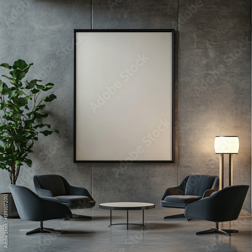 Fototapeta premium Modern office space with empty frame stylish furniture minimalist design...