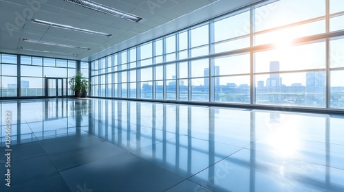 Obraz premium Modern Office Space with Large Windows Offering City View and Natural Light :...