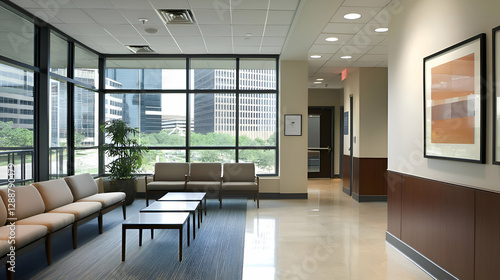 © Munanto, Fototapeta premium Modern Office Waiting Room with City View