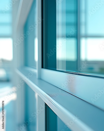 Fototapeta premium Modern office window, clean lines, daylight, bright interior