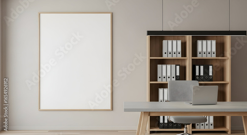 Fototapeta premium Modern Office Workspace Mockup Blank Poster Minimalist Design Clean Interior...