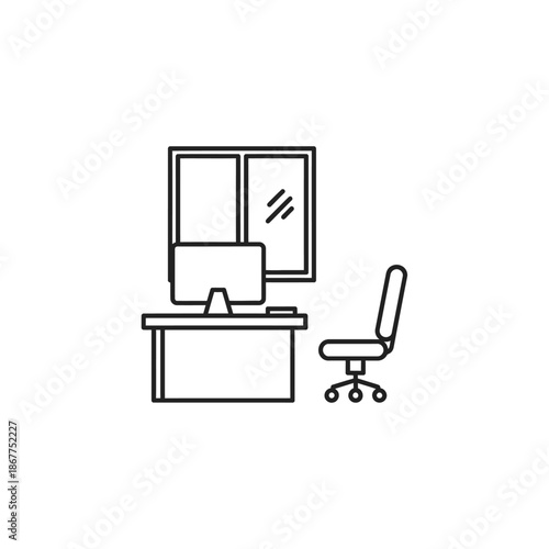 © Teh, Obraz premium Modern Office Workspace with Computer and Office Chair for Business Environment