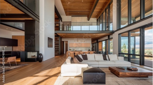 Naklejka premium Modern open-concept living room designed for entertaining and relaxation,...