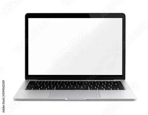 Fototapeta premium Modern Open Laptop with Blank White Screen, Front View, Transparent Background