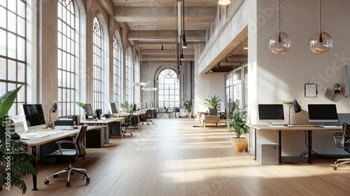 Obraz premium Modern Open-Plan Office Space with Natural Light