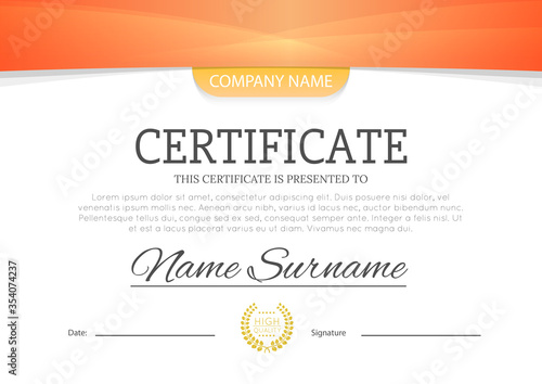 Obraz premium Modern ornage color certificate or diploma A4 horisontal template design...