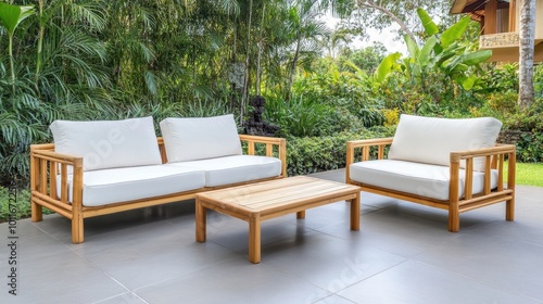 Fototapeta premium Modern Outdoor Seating with Natural Wood Frame